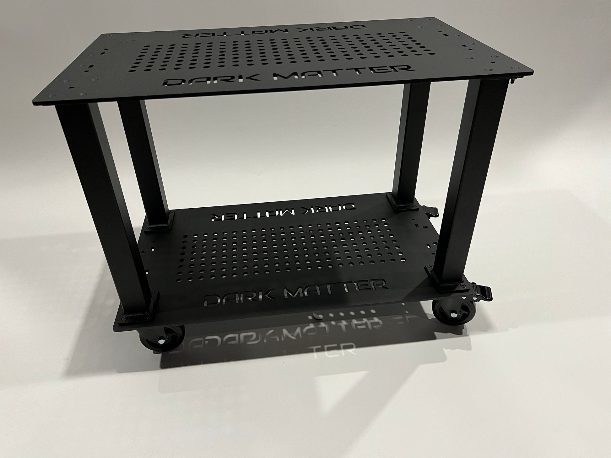 This Rolling Modular Stand has pre-cut holes to attach to your Dark Matter Cab. The Stand is 24" tall x 30.5" Wide x 18" Deep and weighs 37.3 LBS. Includes 4x Casters, 2x Decks, 4x Long Spines and Hardware. Ships un-assembled.
